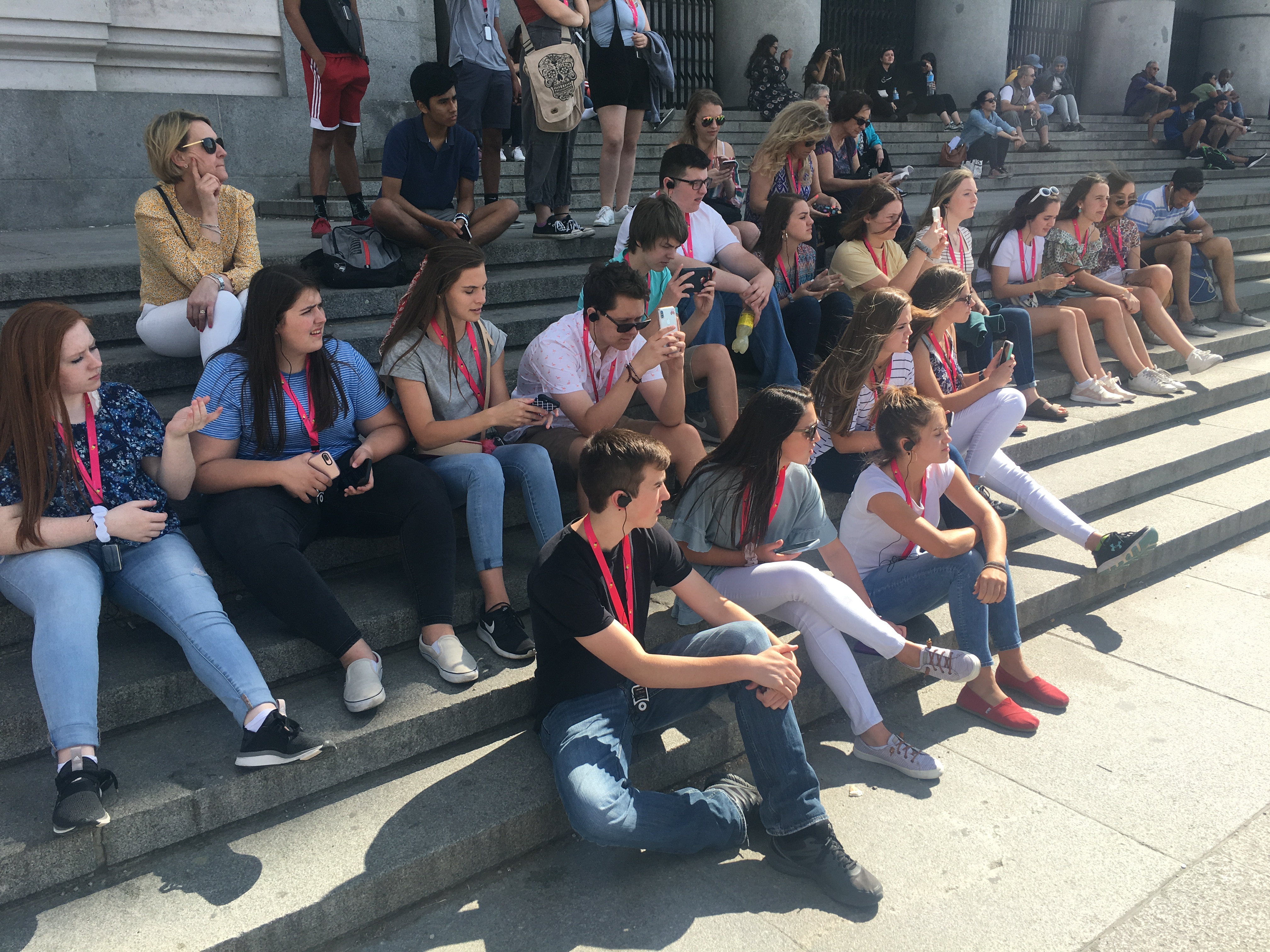 We’ve arrived safely in Spain! Our group of very tired students has been full of troopers today, as we hit the ground running (or at least walking quickly for long distances) in the Spanish capital city today. We packed a lot into a sleepless two-day period, and we’re already looking forward to another excellent day in Madrid tomorrow!