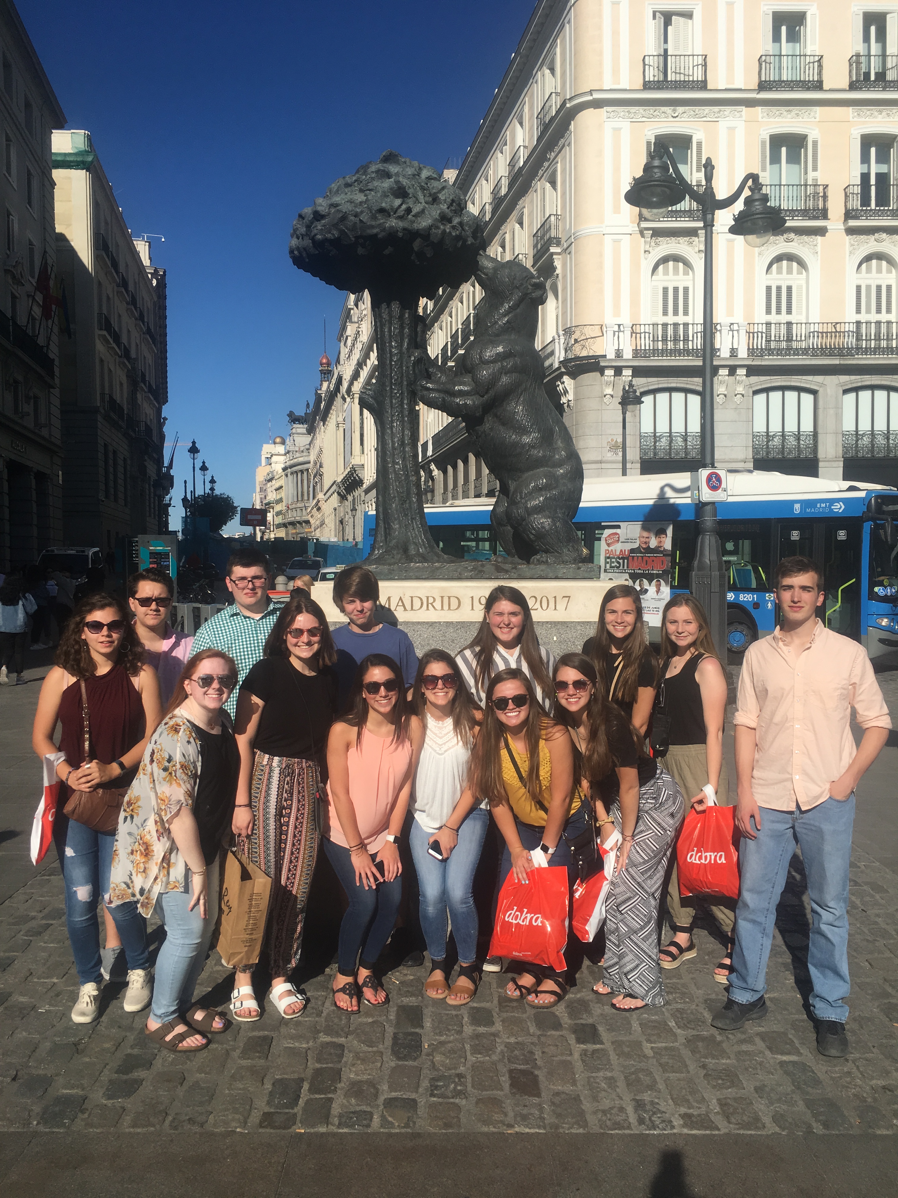 After lunch, we used our free-time for a Profe-led tour in Spanglish. We started at the Bear and Cherry Tree statue, which is the symbol of Madrid, and continued to the shopping district and Gran Via, Spain’s version of Broadway in New York City.