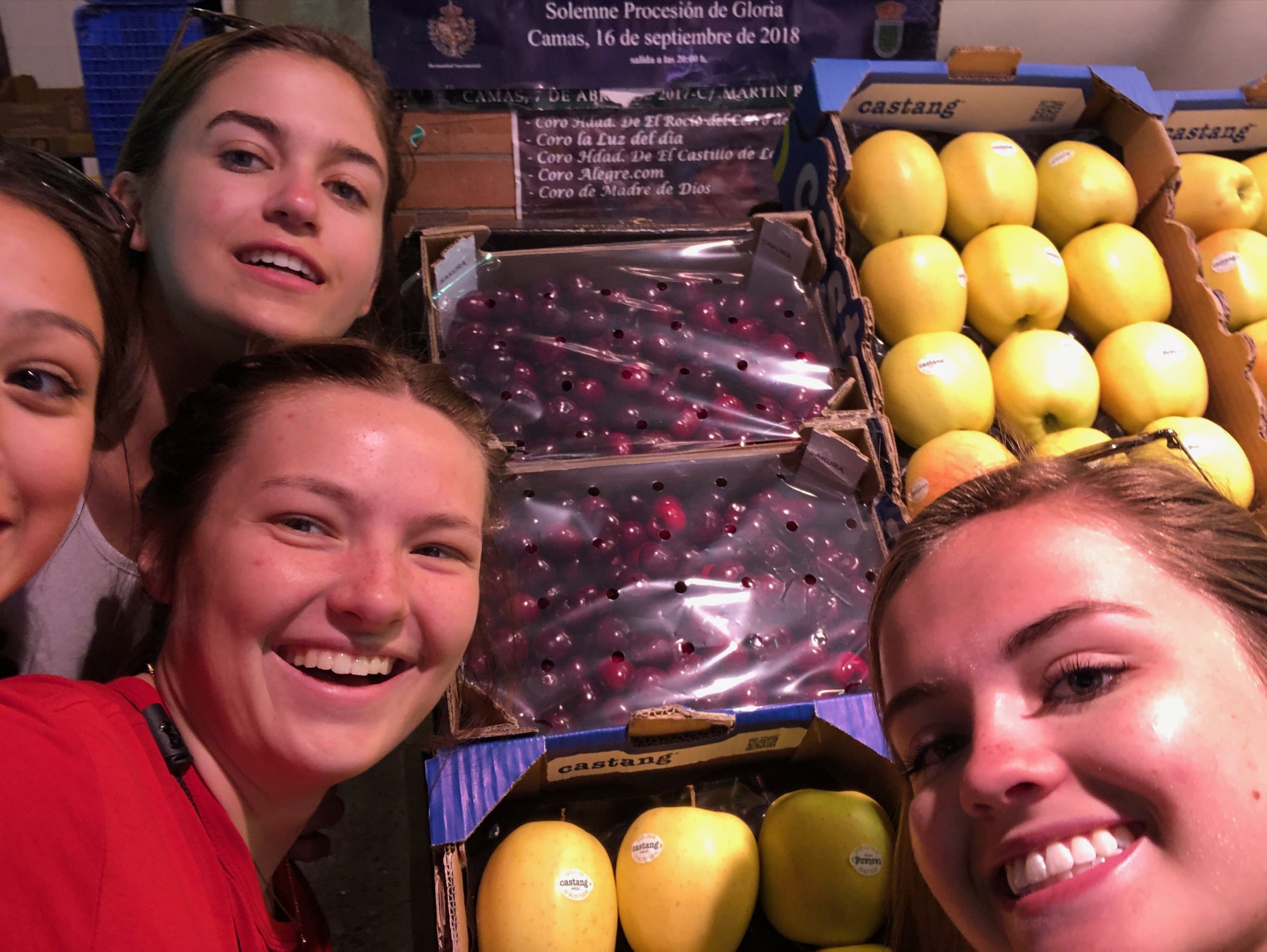 Later, we had a scavenger hunt. One of the first stops was taking a picture with your favorite food in the Marketplace of Triana.