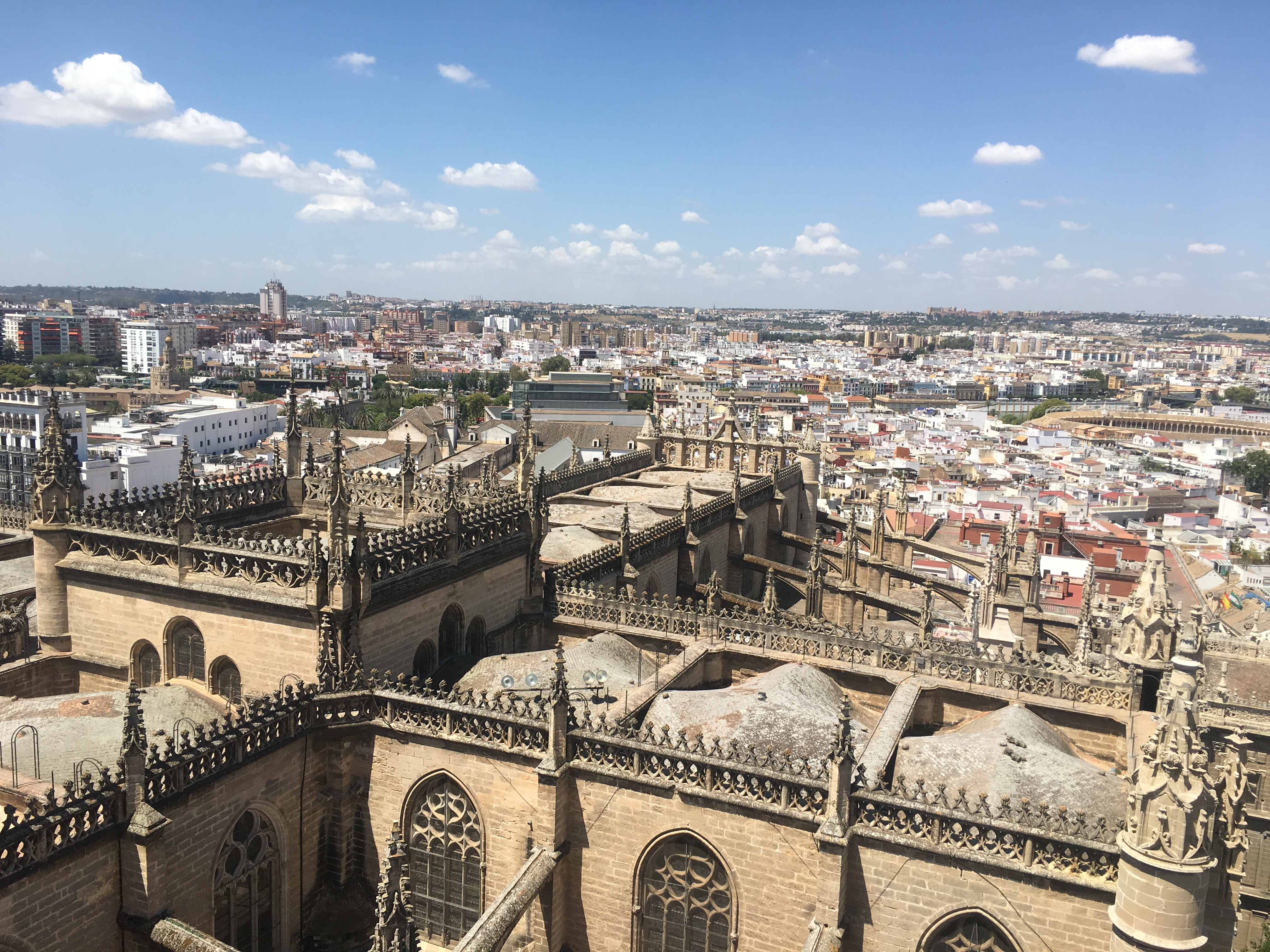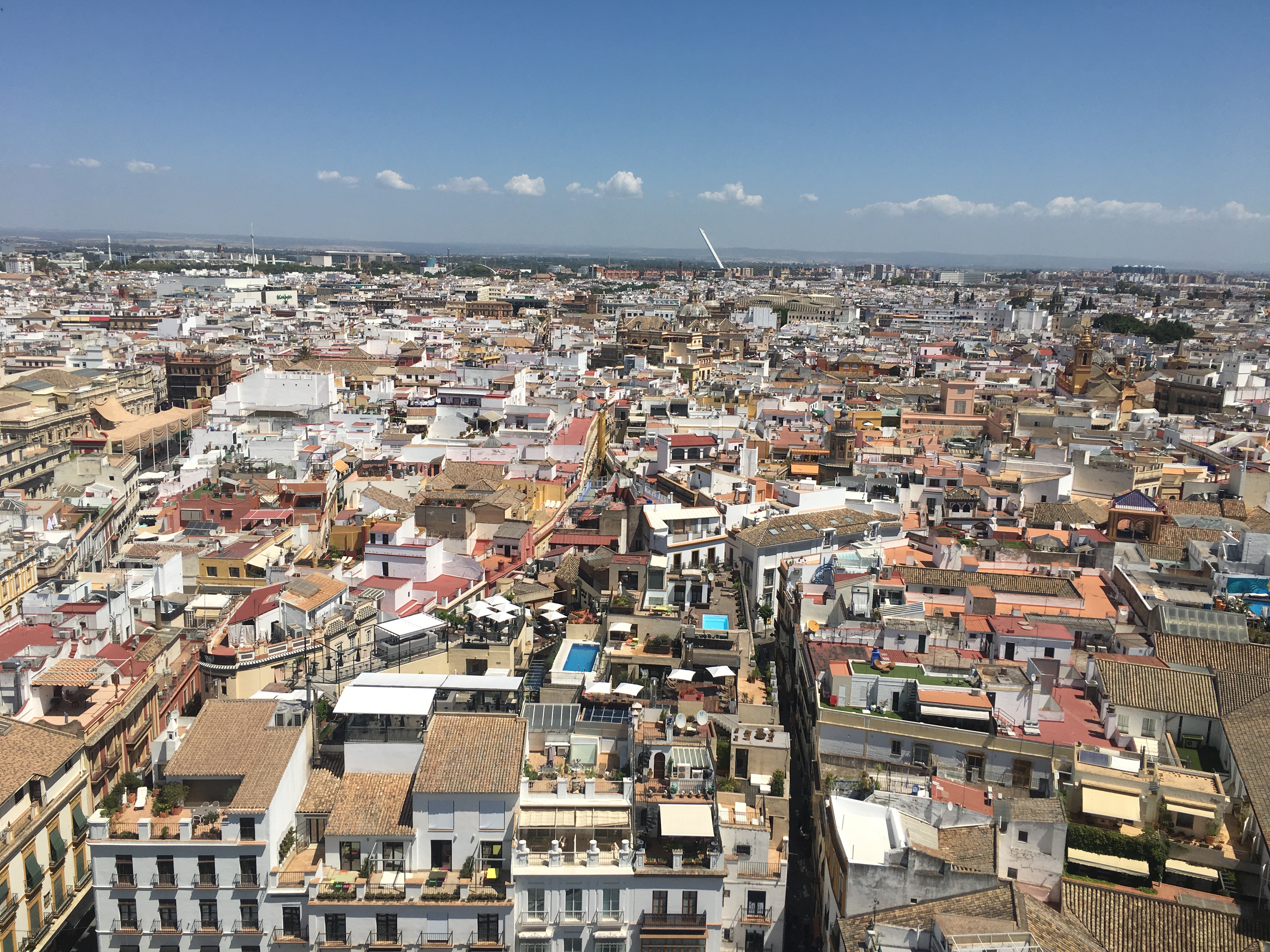 We took the elevator to the top, where we got a stunning view of the city once again, looking back at the Giralda and Cathedral.
