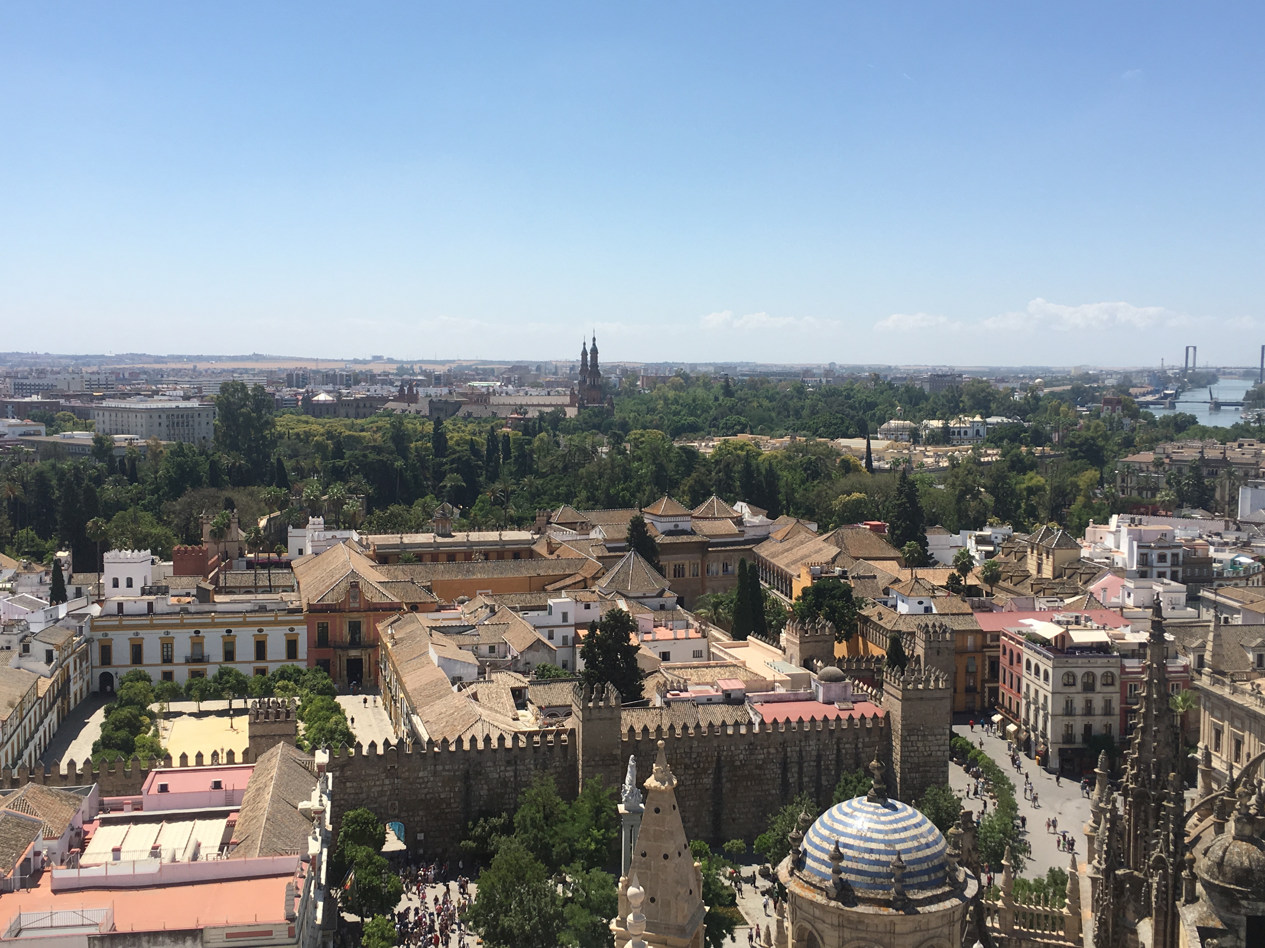 We could also see all the way back to the Plaza de Espana and the gardens of the Alcazar Palace.